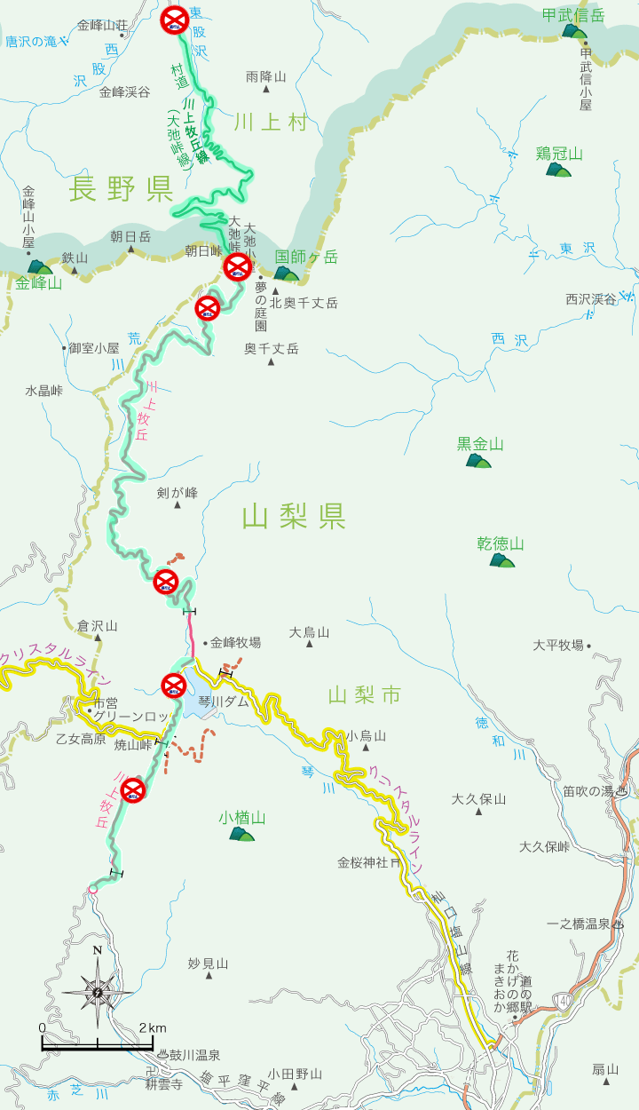 8:30大弛峠‐10:15朝日岳‐12:00金峰山