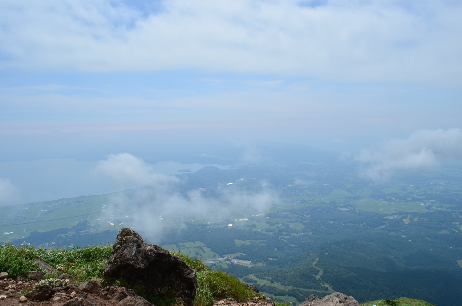 頂上では、曇りながらも猪苗代湖が見えたり檜原湖が見えたりで楽しめました。