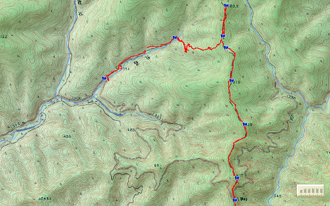 八草峠以降は深い藪を覚悟していたが、予想に反して笹が刈り払われており、