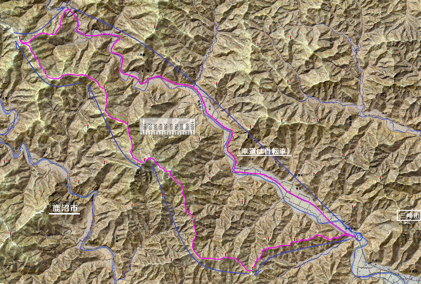 下山後は、やはり県道246沿いのポケットパーク水沢(駐車地から北西に約8km、トイレあり)に事前に置いておいた自転車で駐車地まで移動しました。 |