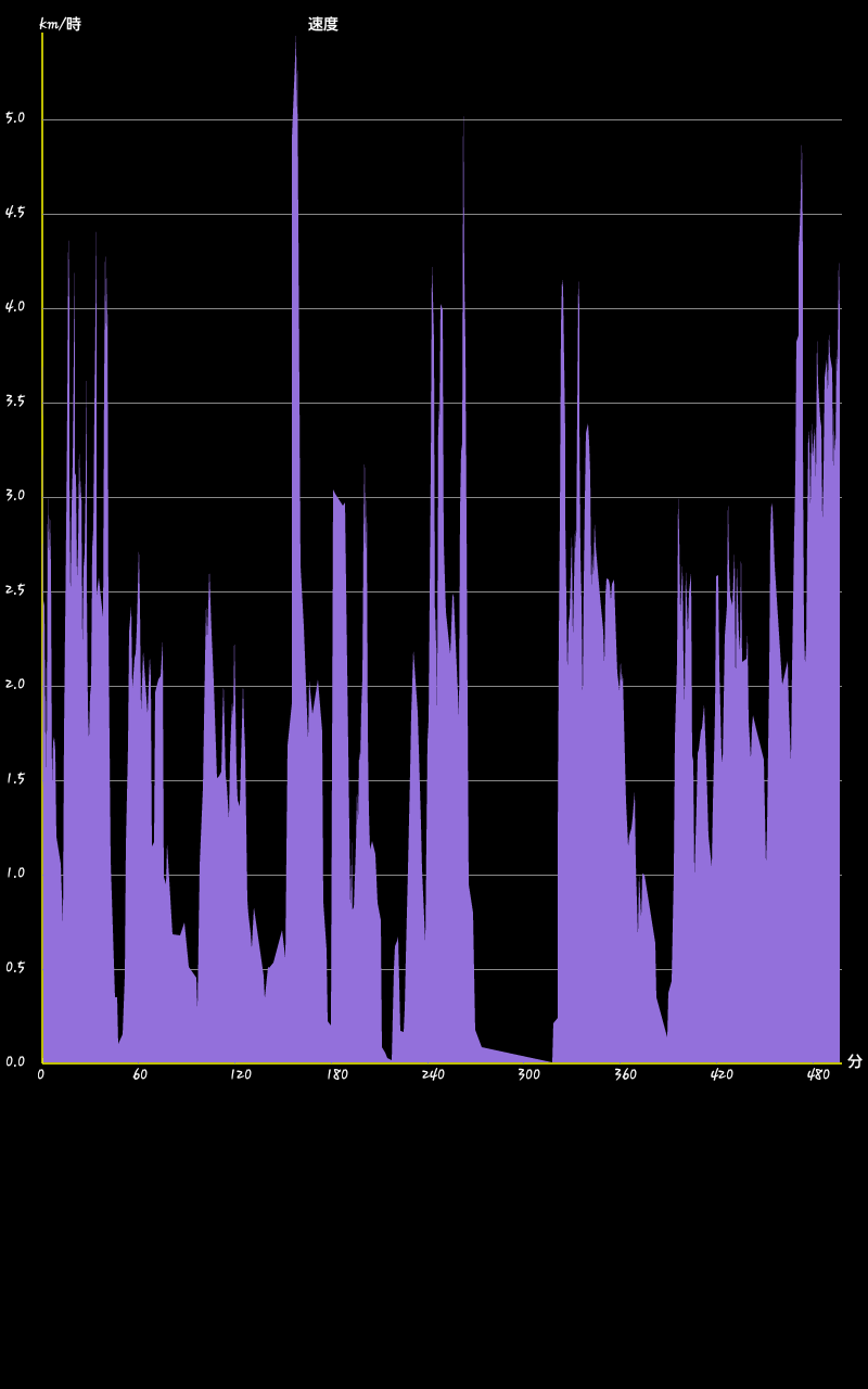 山行の時間ー時速グラフ 今回は撮影しながらなのでゆっくり目です。