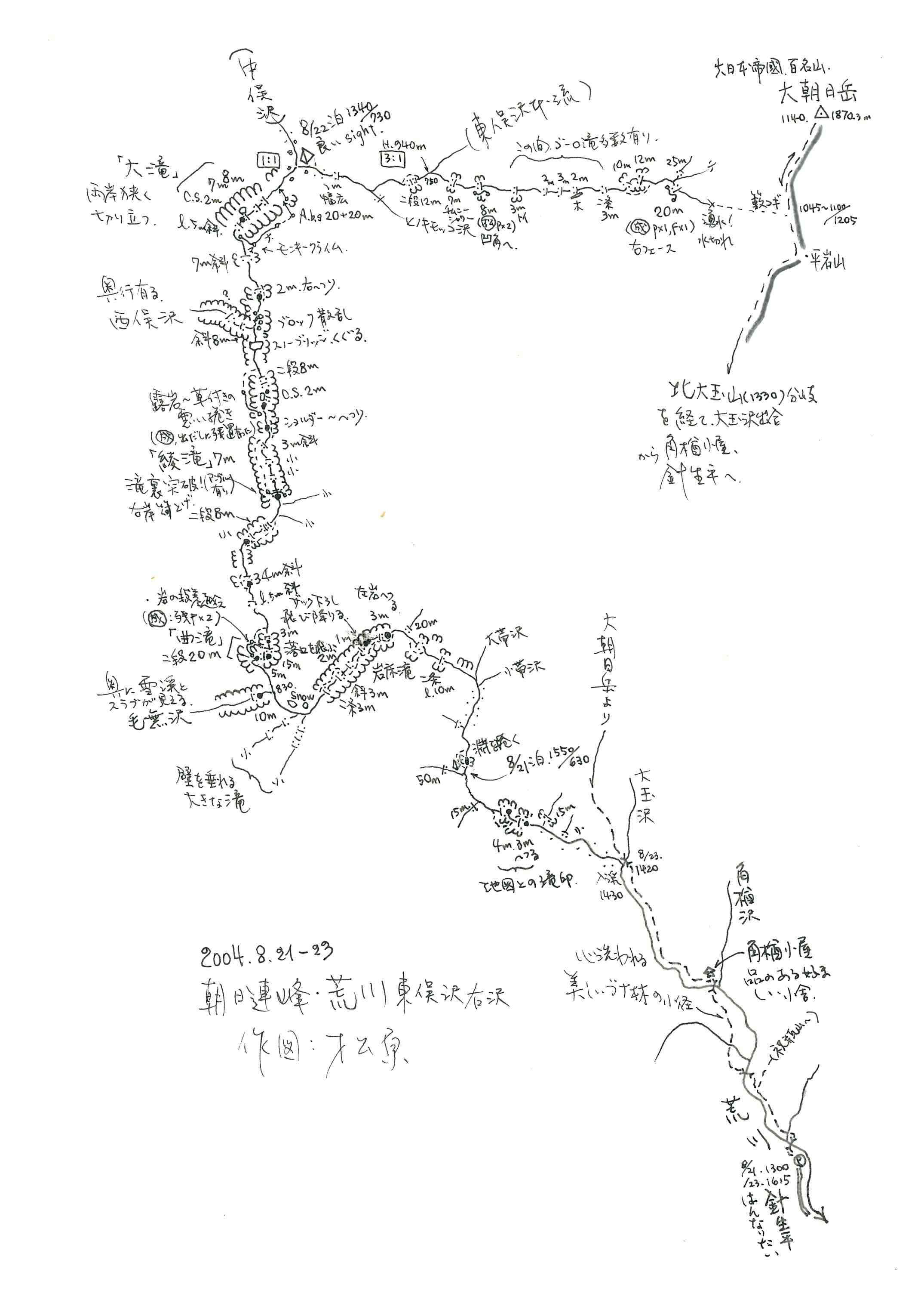 8/21針生平駐車場(1300)大玉沢出合入渓(1430)ナベクラ谷出合泊(1550)