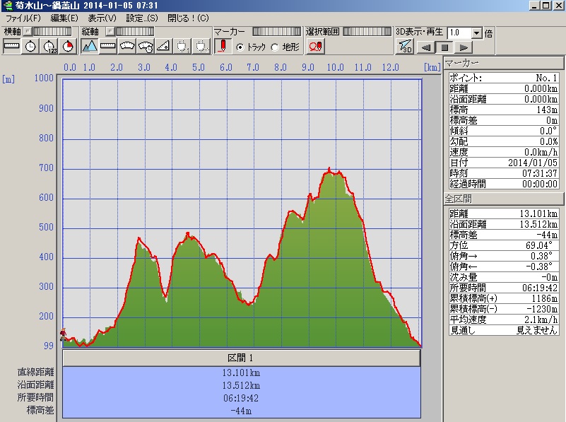 元旦から4日まで、家族と近場のハイキングに行ったり公園で遊んだり、色々リフレッシュできたのですが、休み最後の本日(1月5日)、「ガツンとした山登りがしたい!」ということで、六甲の菊水山から摩耶山までを縦走してきました。というのも、私の周りの山の先輩達が次々と六甲全山縦走を成し遂げ、「今年は私も」と思っていたものですから、前半の山場となる菊水山、そして摩耶山の稲妻坂を通しで登っておこうと思った次第。