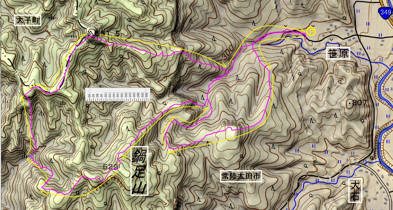 高い山でもせいぜい600m程度、山あり谷ありの奥久慈は、楽しめば楽しむほど一般的な登山のような綺麗な一つの三角形の標高グラフにはなりません。今回の三角形は三つでした。それと、細かいピークが多く地形が波打っているため、地形図の等高線はしっかり見ないと尾根だと思っていたら沢だったなんてことがマジであります(私だけ?)。起伏が小さい分、地形図に現れない小尾根や小沢も、他の山域より多い気もします。