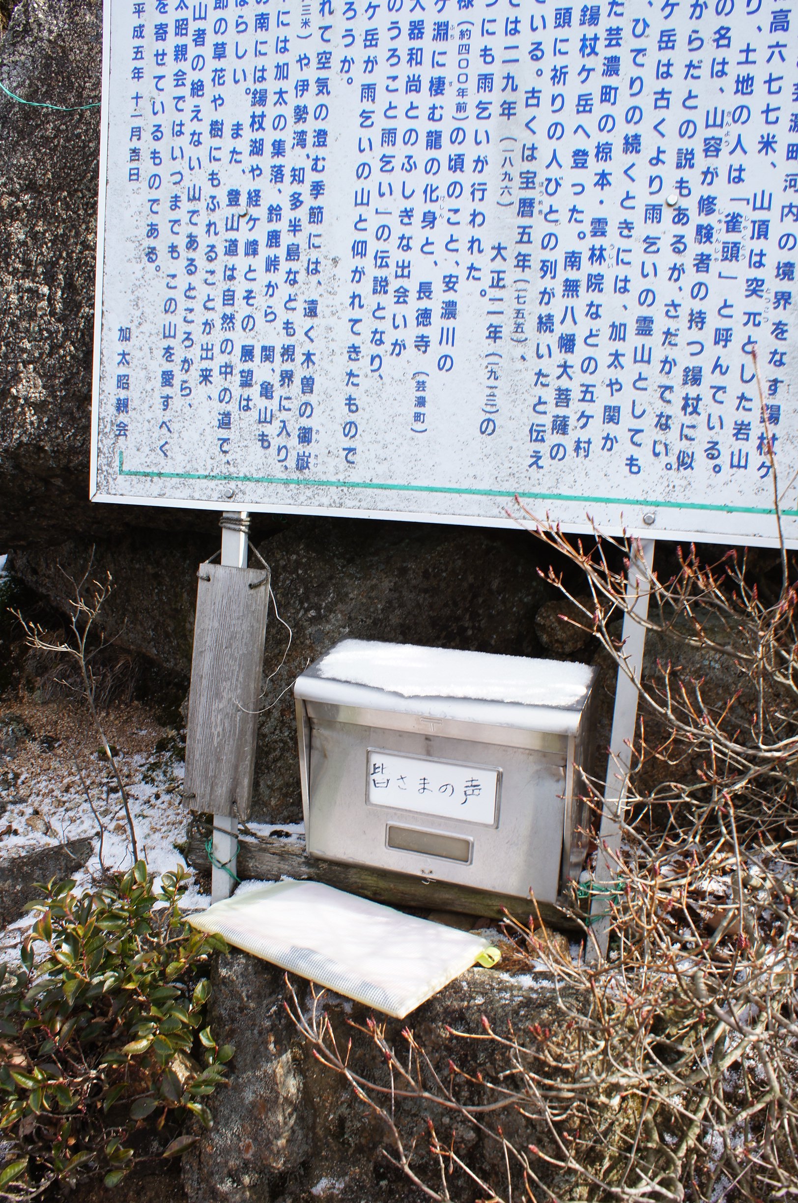 ポストは見あたりません 危険箇所はないですが、鎖場は慎重に |