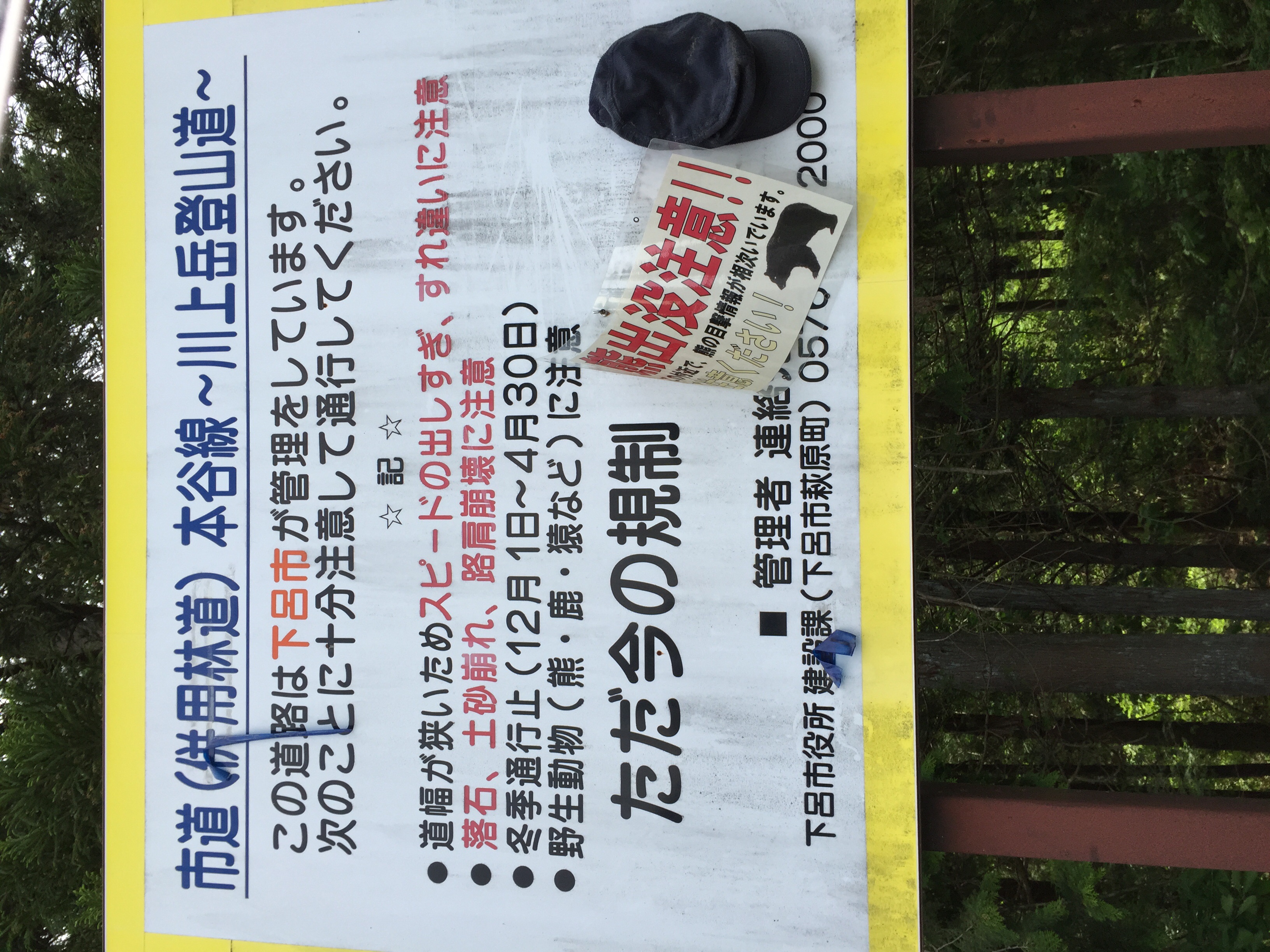 熊出没注意と荒れた林道に注意