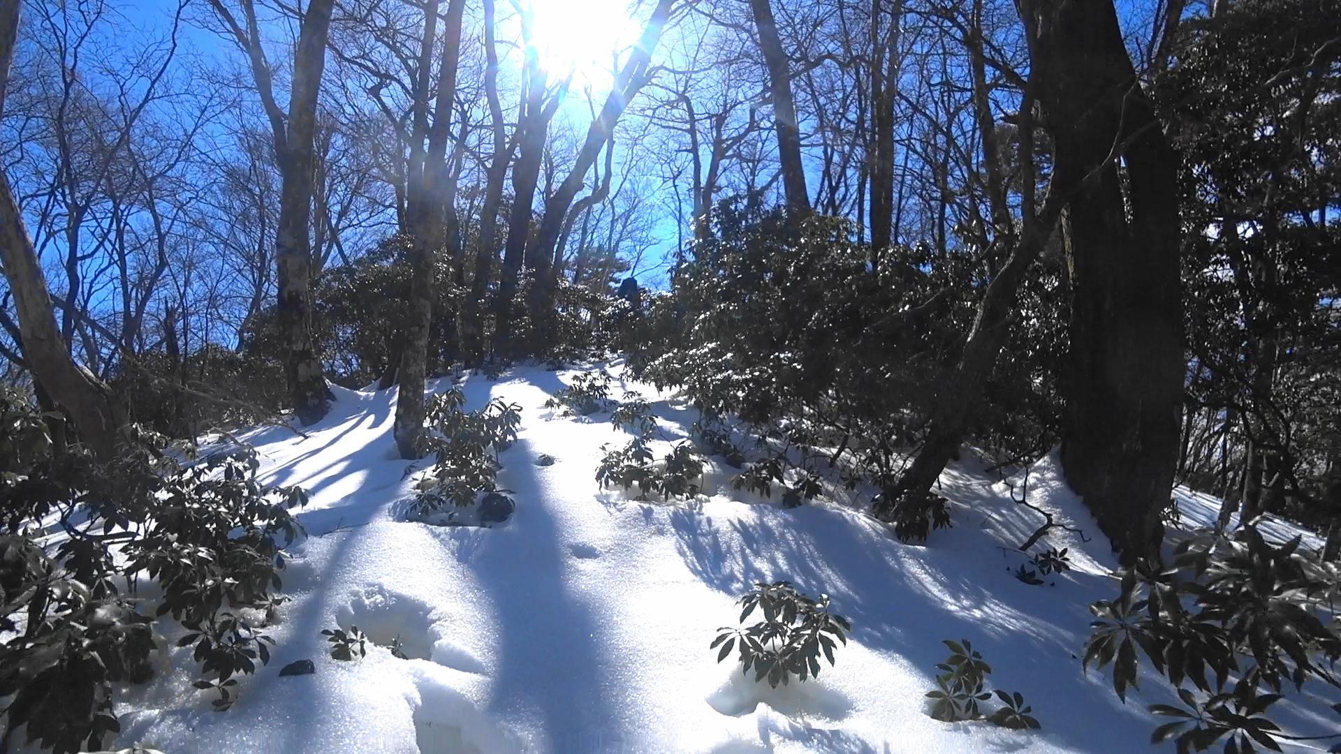 積雪の多い時のバリエーションは雪に足が沈んでまいりました。