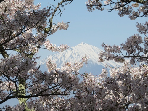光城山はふもとからみると、桜が登山道に沿って植えられているので、登り龍のほうにみえます。