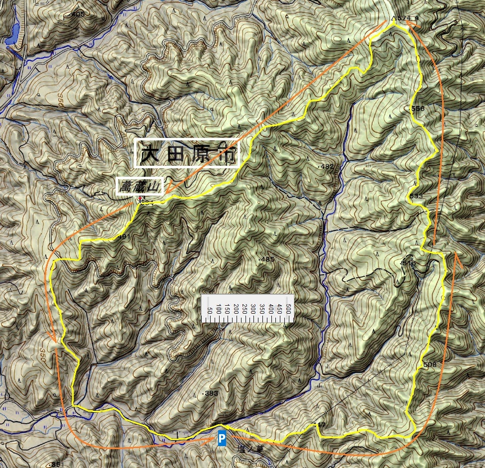 今回のルートもそうですが、栃木県の東側の山域(主に那須町と大田原市)は何度か歩いていて、その度にヤブに悩まされてきた印象です。では、なぜ懲りずにまた行くのか。不思議ですねぇ。少なくとも言えることは、整備されて歩きやすい登山道を1,2時間歩くより、多少歩きにくくても自然のままの山をそれなりの時間歩いた方が刺激的で面白いし、そもそも登頂が目的ではない。ということでしょうか。ただ、その「歩きにくさ」の程度が問題で、ちょうど良い「歩きにくさ」なら良いんですけどね。勝手なもんです。