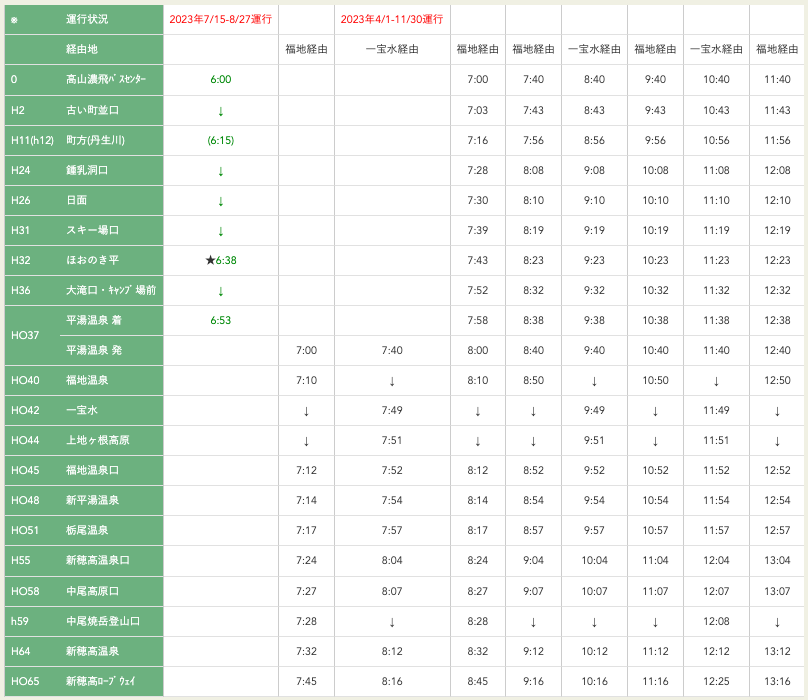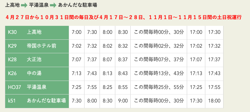 04:30 穂高岳山荘 - 05:32 パノラマコース分岐 - 06:00 涸沢小屋 06:20 - 06:29 涸沢ヒュッテ - 07:05 Sガレ - 07:23 ソーダラップ - 07:57 本谷橋 08:07 - 09:14 横尾山荘 - 09:46 奥又白谷仮設橋 - 10:15 徳沢仮設橋 - 10:21 迂回路分岐 - 10:25 徳澤園 10:35 - 11:34 徳本峠分岐 - 11:38 明神 - 12:29 小梨平 - 12:35 ビジターセンター - 12:37 河童橋 - 12:46 上高地バスターミナル