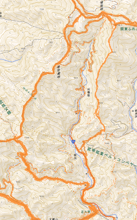 08:00 正丸駅 - 08:20 356m地点 - 08:50 三田久保峠 - 10:20 刈場坂峠 - 10:45 虚空蔵峠 - 11:45 旧正丸峠 - 12:00 536m地点 - 12:50 正丸駅